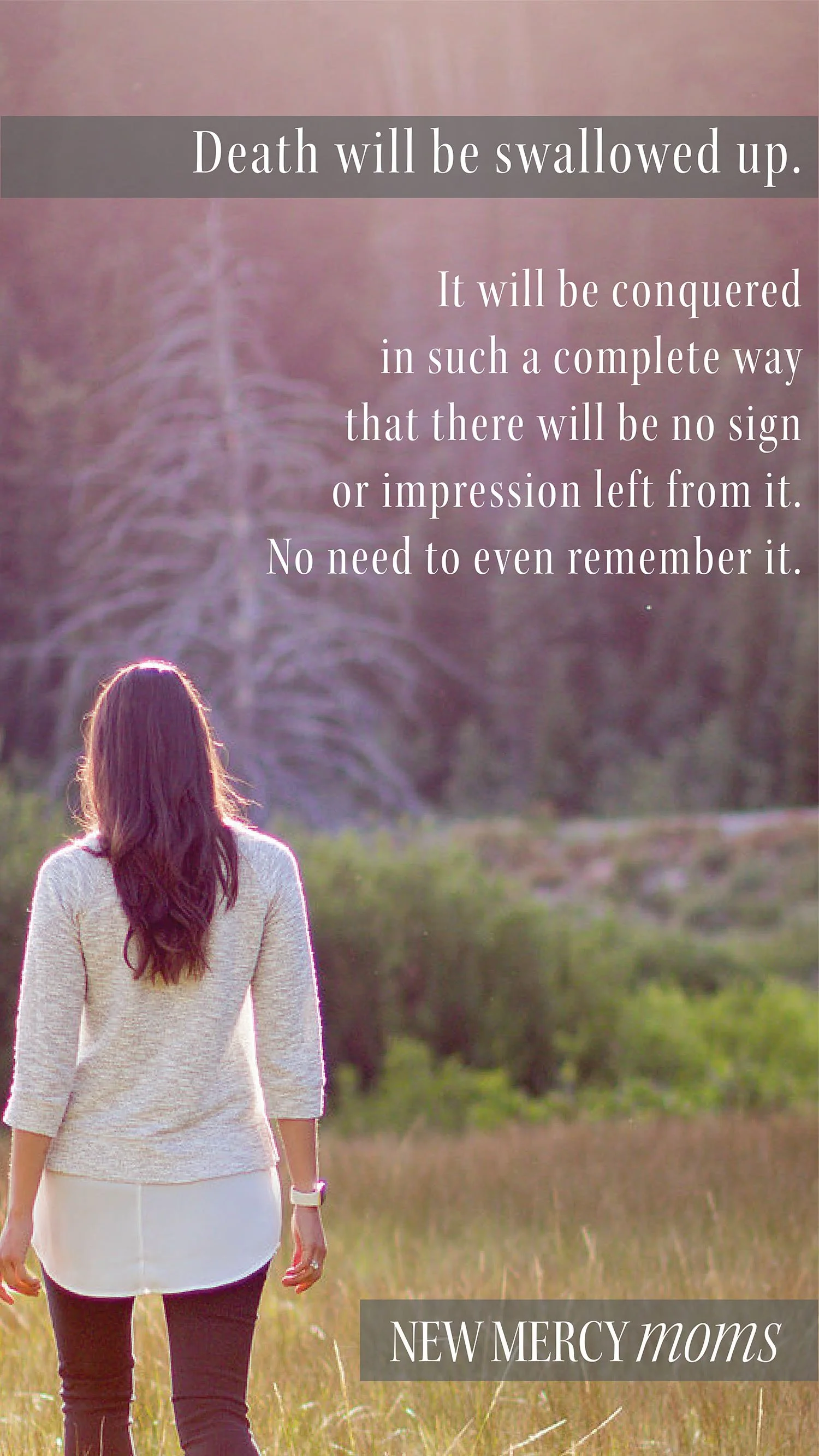 Take a look at 1 Corinthians 15:54: “When the perishable puts on the imperishable, and the mortal puts on immortality, then shall come to pass the saying that is written: ‘Death is swallowed up in victory.”' It's not just an Old Testament concept; it's a running theme throughout the whole Bible, solidified by Jesus' own resurrection. Jesus didn't just cheat death; He stomped it under His feet.